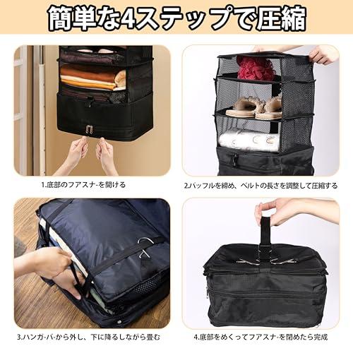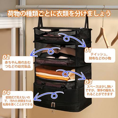 トラベルバッグ トラベルポーチ 吊り下げ 圧縮 トラベル収納バッグ トラベルグッズ 折り畳み式 省スペース 衣装ケース オーガナイザー 4段
