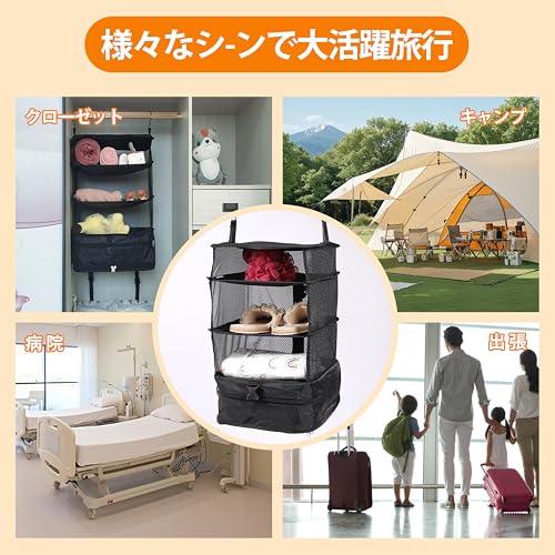 吊り下げ トラベルポーチ 革新的な吊り下げデザインが特徴です 旅行用バッグをワードローブやフックに簡単に掛けるだけで、4層の大容量収納スペースが瞬時に展開され 衣類や小物が一目でわかり スーツケース内が散らかることがなくなります。