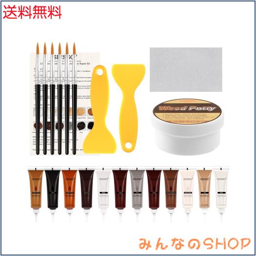 【木製家具補修セット】広范に使用される強力な木材修復化合物を備えています。12色の補修木材フィラー、1つウッドパテ、6本ブラシ、2本スクレーパー、1枚サンドペーパー、1冊のマニュアルが含まれています。
