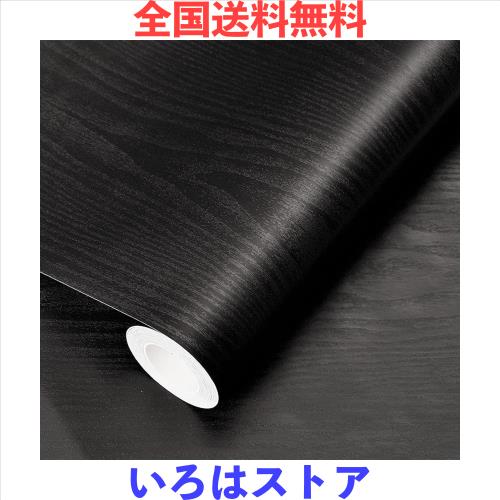 Jiroka 壁紙 木目 リメイクシート 木目調シート 黒 厚手 透けない 木目調 壁紙 シール のり付き 40cm×5m ブラック 木目シール 貼って剥
