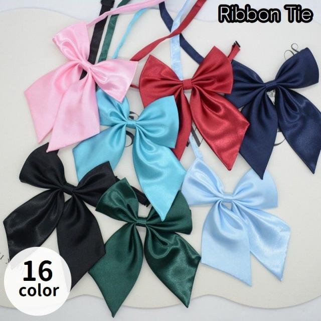 リボンタイ ボウタイ 蝶ネクタイ スクールリボン シルク調 光沢感 シンプル 無地 制服 学生服 女子高生風 コスプレグッズ コ