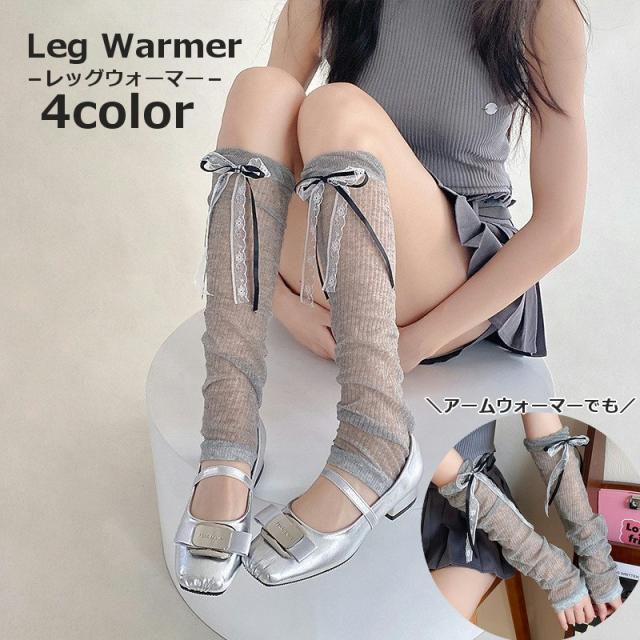 レッグウォーマー レッグカバー アームウォーマー アームカバー レディース リブ 透け感 薄手 おしゃれ かわいい リボン レー