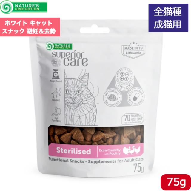 ネイチャーズプロテクション ホワイトキャットスナック 避妊&去勢 75g 正規品 1歳以上 室内猫 猫用 おやつ Nature’s Protection 歯垢 歯石 不快 臭い 軽減 免疫をサポート 猫 体 歯 骨 強化