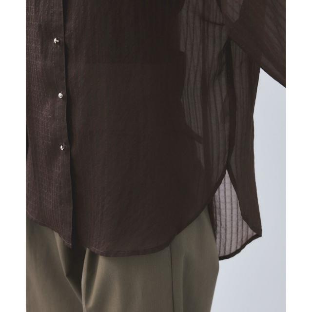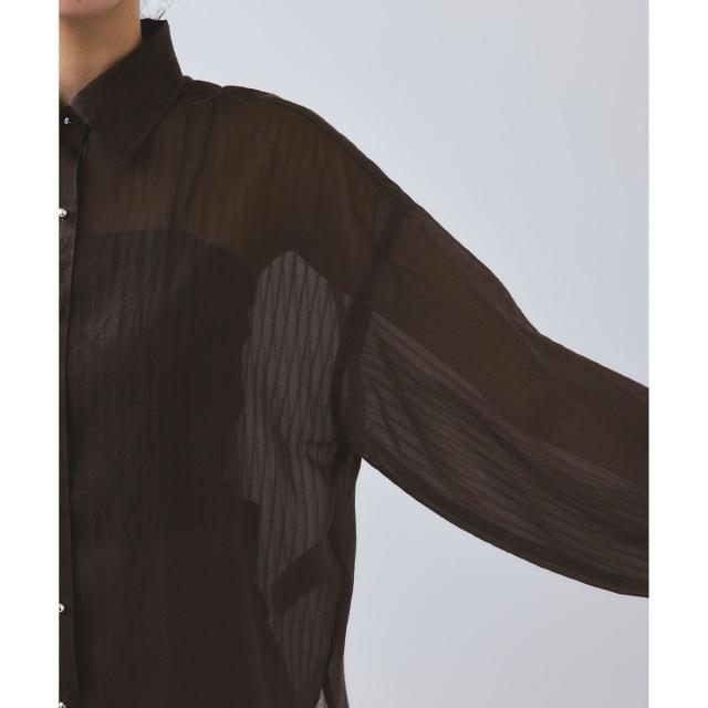 肌離れするオーバーなサイズ感で、さっと羽織るのにぴったりなシルエットのシアーシャツ。フロントのメタル釦できらっとポイントをプラス。シンプルながら存在感のあるアイテムです。
