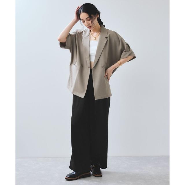 光沢感のある滑らかなサテン素材を使用し、肌あたりがやさしくさらっと軽やかな着心地。ほどよいハリと落ち感があり、リラックス感がありながらもラフすぎず、きれいめな印象で着こなせます。