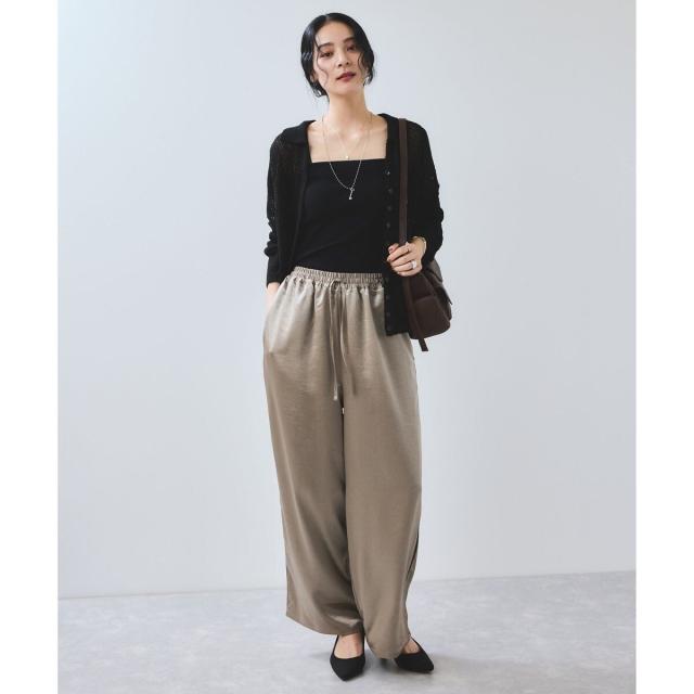 ・程よい光沢感のあるサテン素材で、ラフすぎず大人見え。