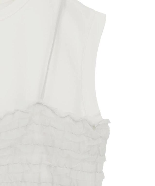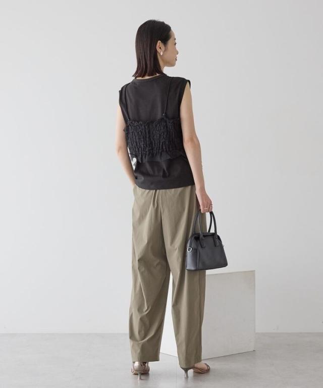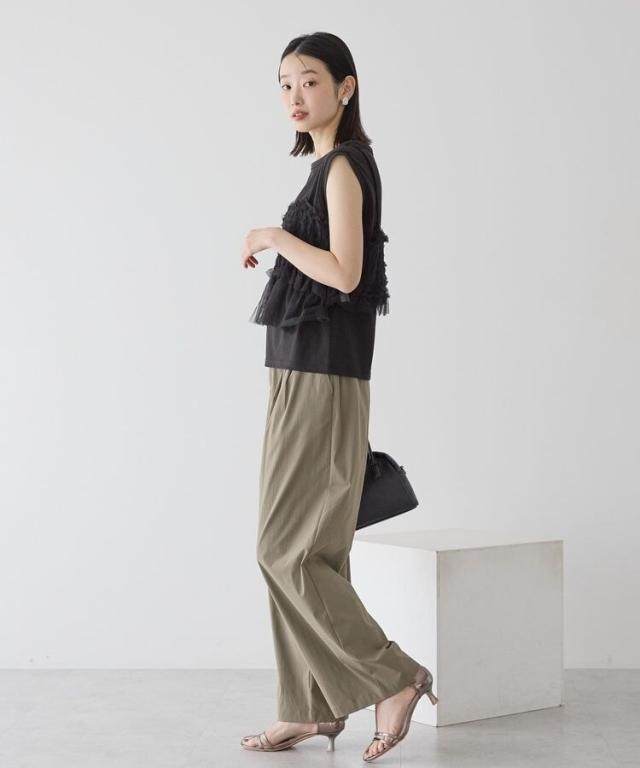ノースリーブカットソーに華やかなフリルが映えるチュールキャミソール付きセットアイテム。それぞれ単品でも着回しができるのでスタイリングの幅が広がります。ビスチェのフロントはフック仕様で着脱もしやすく、華奢なストラップは長さ調節可能。デニムを合わせてカジュアルスタイルに、スカートと合わせてフェミニンな雰囲気を楽しむのもおすすめです。透け感[あり]