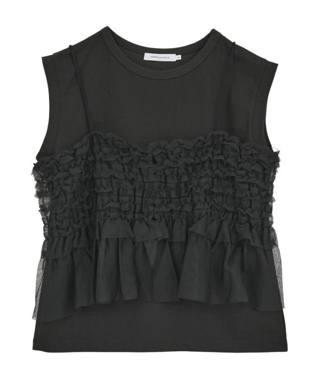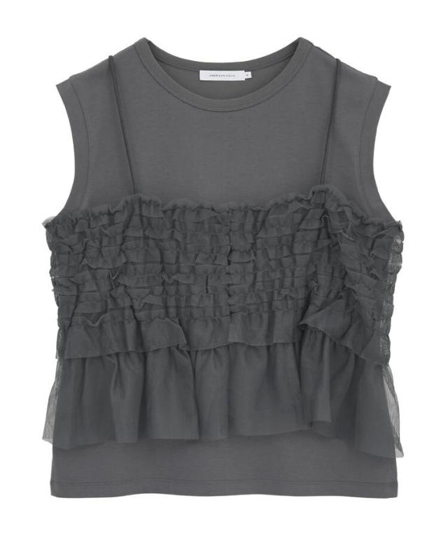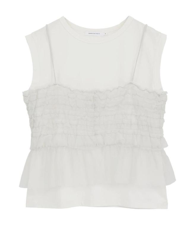 セットアイテム チュールキャミソール ノースリーブカットソー レディース フリルデザイン ストラップ調整可 着回し力 30代 40代 レディース カジュアル 秋冬 25AW AMERICAN HOLIC AMERICAN HOLIC アメリカンホリック アメホリ