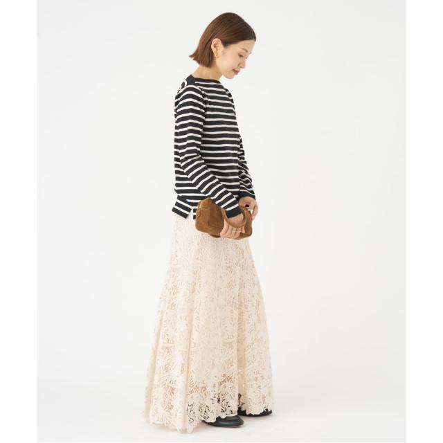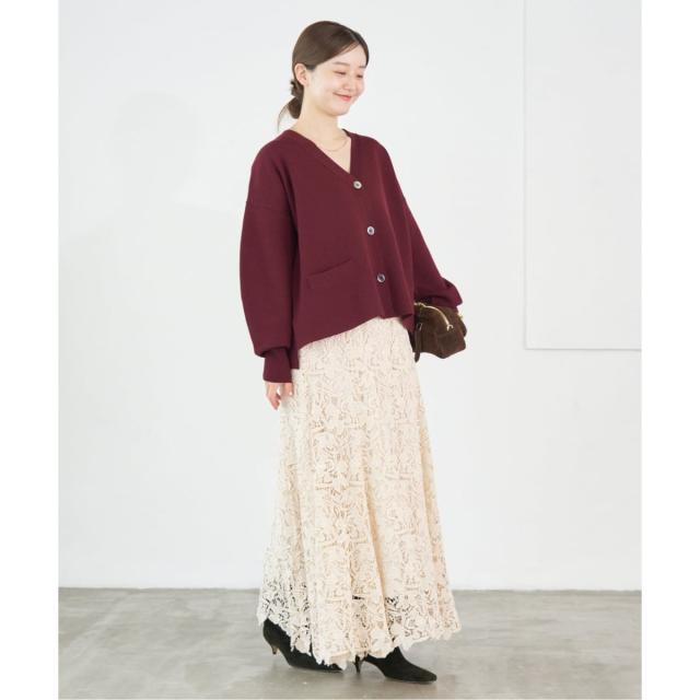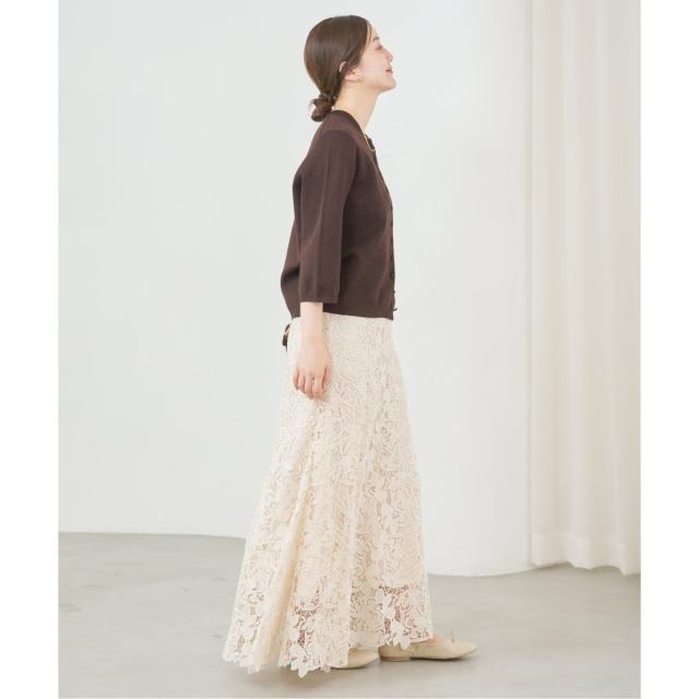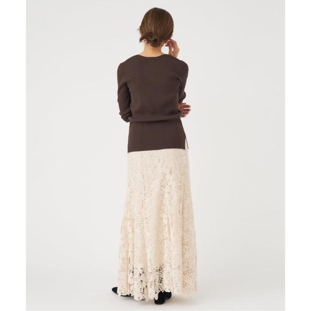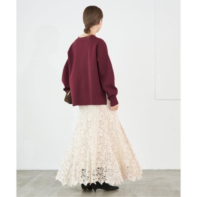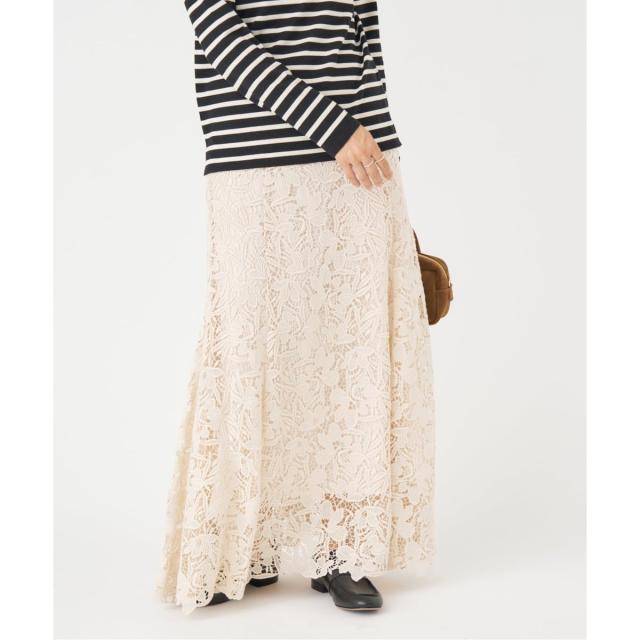 裾にかけて広がるマーメイドシルエットのスカートは、歩くとレースの揺れ感が美しくエレガントな印象に。