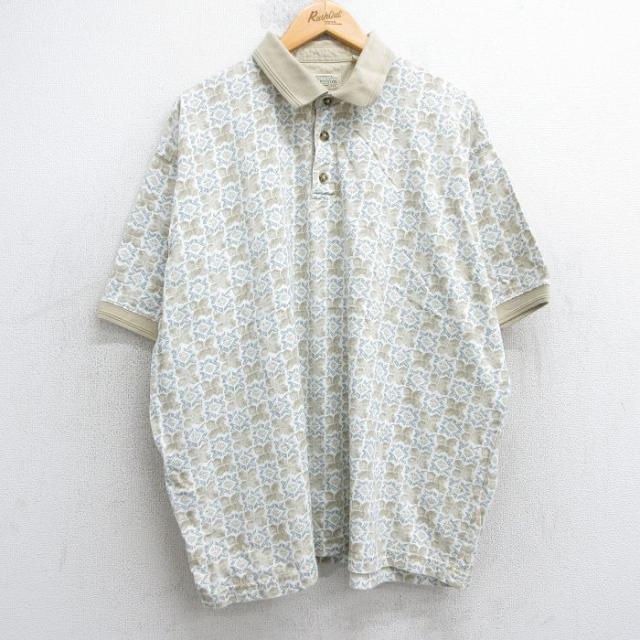 【商品名】 XL★古着 セントジョンズベイ 半袖 ポロ シャツ メンズ 00年代 00s 総柄 大きいサイズ コットン ベージュ他【spe】
