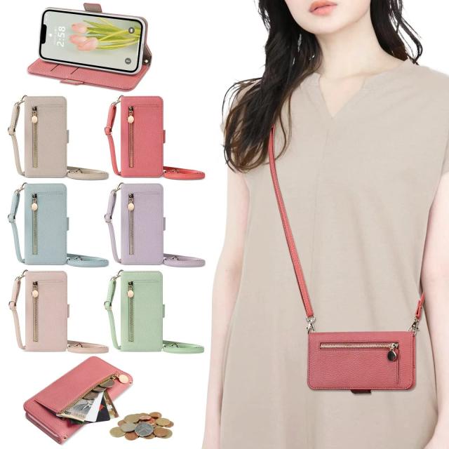◆商品名:YerlyLan 対応 i Phone 15 ケース 財布型 アイフォン 15 ケース 手帳型 ジッパー式 大容量ショルダーケース ストラップ付き i Phone 15 ス