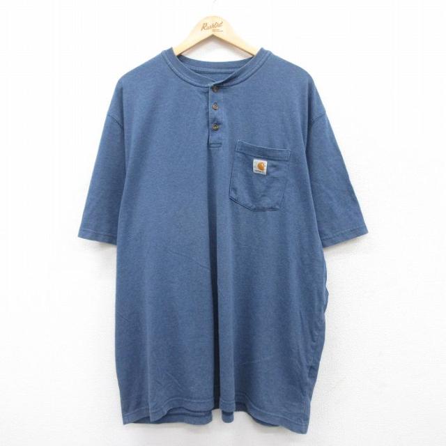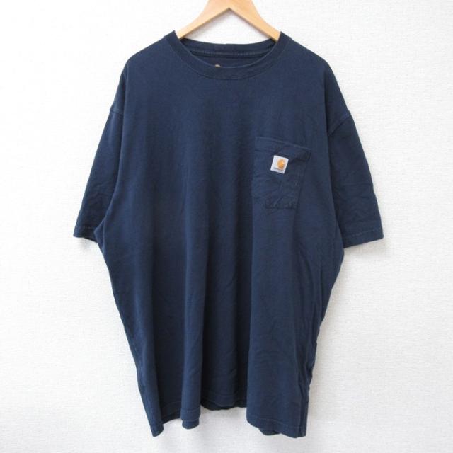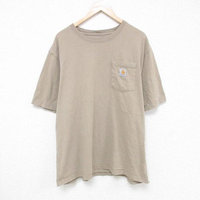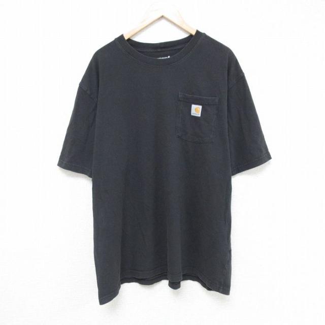 古着 カーハート Carhartt 半袖 ブランド Tシャツ メンズ ワンポイントロゴ 胸ポケット付き 大きいサイズ ロング丈 コットン 中古 古着