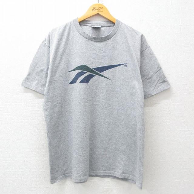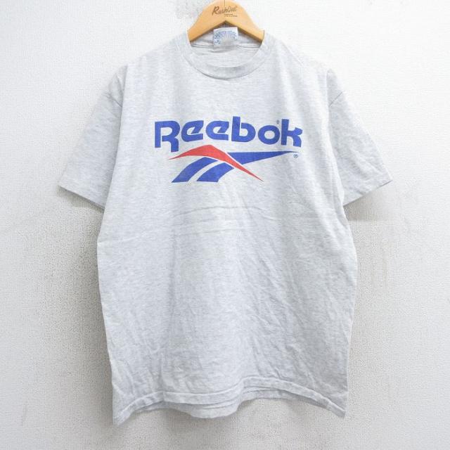 古着 リーボック REEBOK 半袖 ビンテージ Tシャツ メンズ 90年代 90s ビッグロゴ コットン クルーネック USA製 薄グレー 霜降 中古 古着