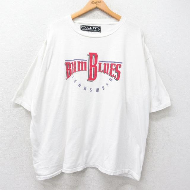 【商品名】 XL★古着 b.u.m.equipment 半袖 ビンテージ Tシャツ メンズ 90年代 90s BUM BLUES 大きいサイズ コットン クルーネック USA製 白【spe】