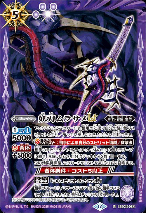 バトルスピリッツ 妖刀ムラサメLT(Mレア) バーニングレガシー(BSC48) 032 | 剣刃・眷属・家臣 ブレイヴ 紫
