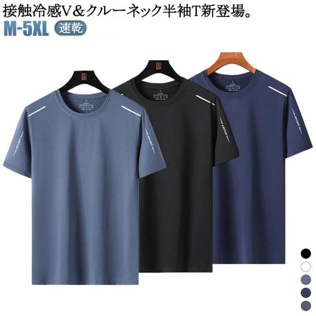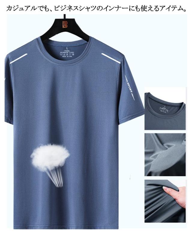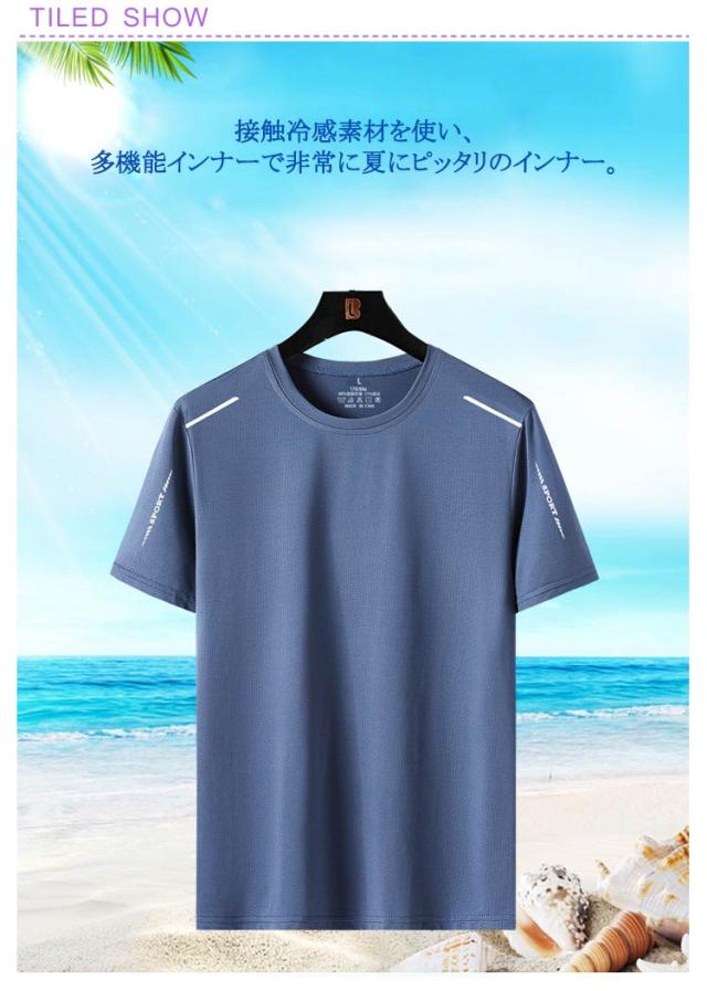 メンズ 半袖 Tシャツ 速乾 接触冷感 トップス クルーネック UVカット メッシュ スポーツ ストレッチ ドライ 通気性 ゴルフインナー 夏用 涼しい 作業服 作業着 吸汗 軽量 スポーツウェア アウトドア 送料無料