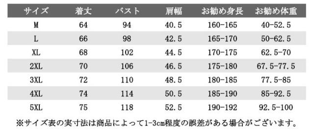 | サイズ | M L XL 2XL 3XL 4XL 5XL |