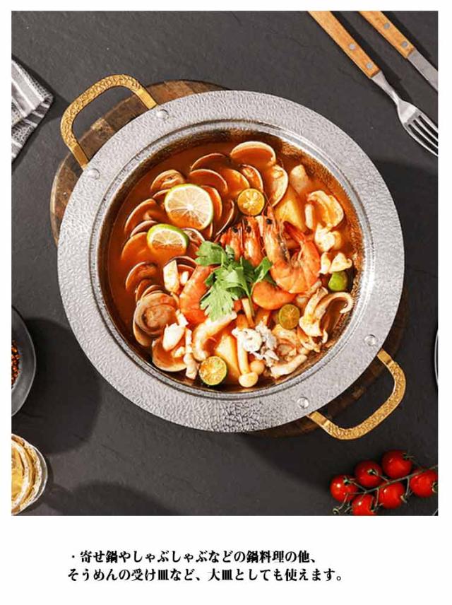 | ・IH対応よせしゃぶ鍋 ・寄せ鍋やしゃぶしゃぶなどの鍋料理の他、そうめんの受け皿など、大皿としても使えます。 ・本体は熱効率が良いとされる槌目加工 | |