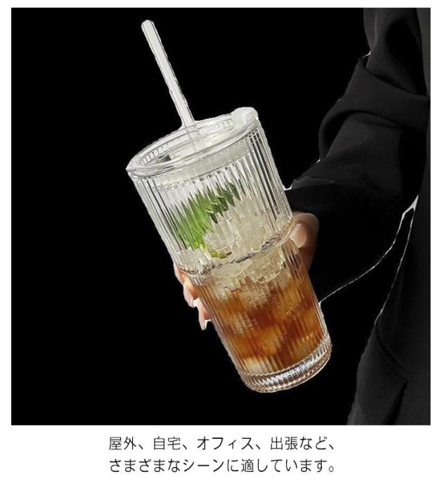 蓋付き グラス かわいい ガラスカップ マグカップ ストロー付き ガラスカップ グラスコップ 耐熱 ガラスジャー ボトル 水筒 ガラス製 コーヒーカップ コップ ティーカップ タンブラー 直飲み 持ち運び こぼれない 通勤 コーヒー 炭酸