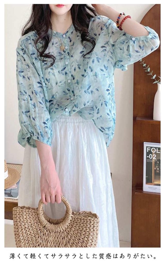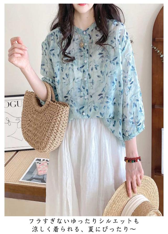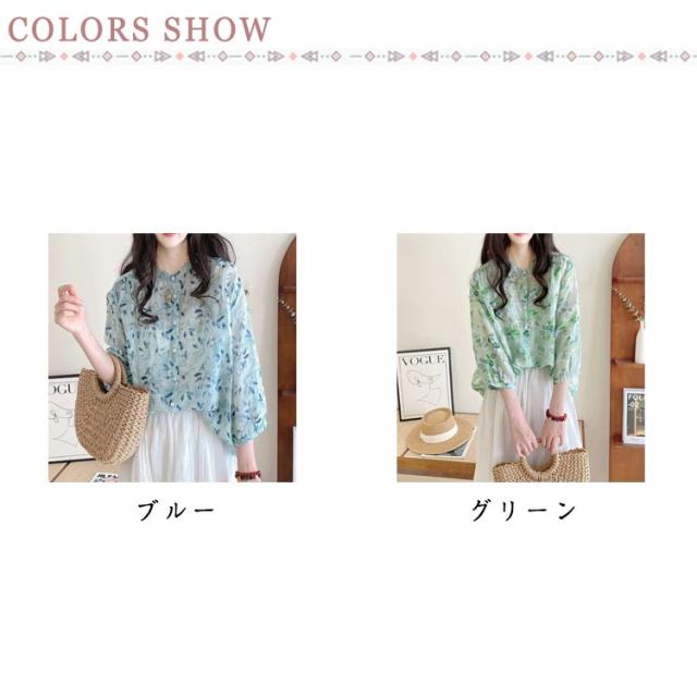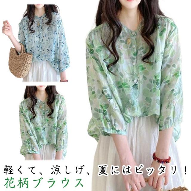 ブラウス 七分袖ブラウス ブラウス レディース オフィスブラウス 韓国風 オシャレブラウス シフォンブラウス シフォントップス 花柄 UVカット 通勤OL ゆったりシャツ 春夏 40代 30代 50代 エレガント おしゃれ きれいめ 涼しい