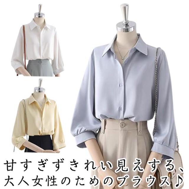 七分袖 レディース カジュアル 長袖 ブラウス オフィス 韓国 開襟シャツ トップス シャツ シャツ スキッパーシャツ シャツ ゆったり 夏 春 ブラウス 大きいサイズ 体型カバー 上品 Vネック カジュアル ブラウス ブラウス シャツ