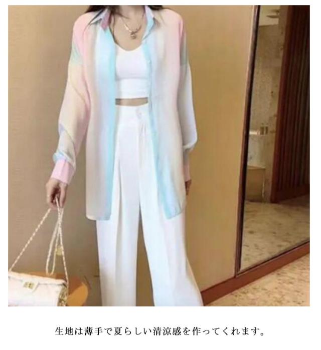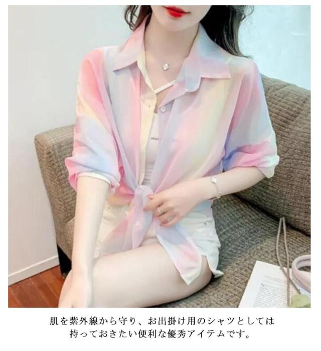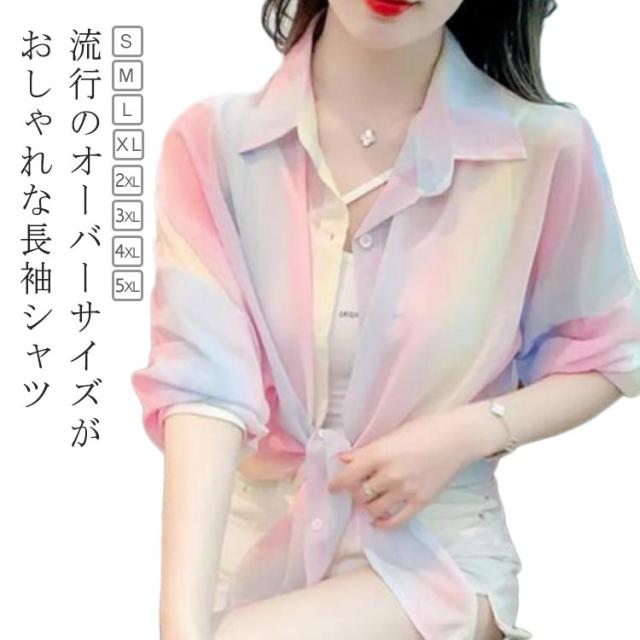 長袖 ブラウス 長め丈 シフォン ロングシャツ シャツ ゆったり 春 シンプル UVカット 夏 春夏 トップス 涼しい 薄手 羽織 通気性 普段着 おしゃれ カジュアル ロングシャツ 体型カバー 冷房対策 紫外線対策 ロング丈 お出かけ 大きいサイズ アウトドア 大人女性