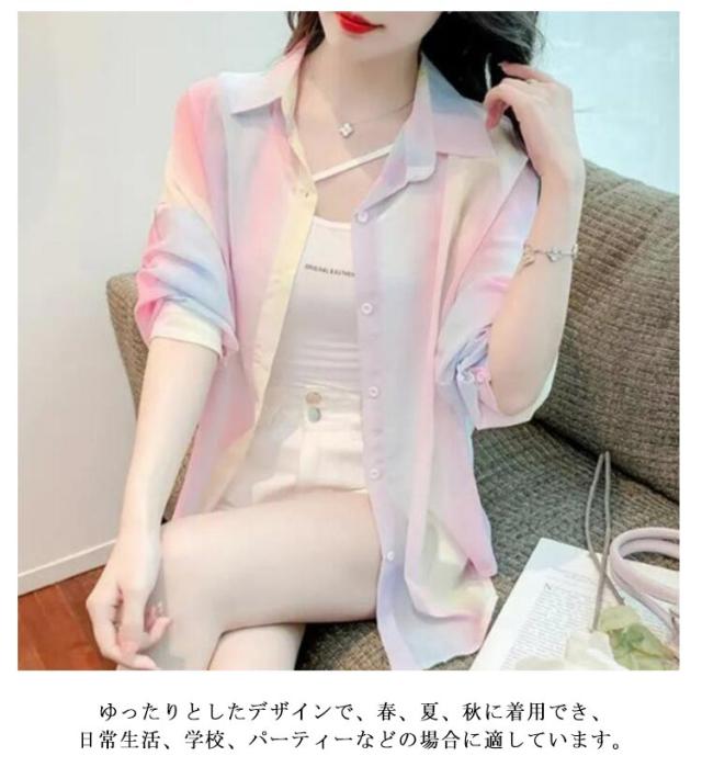 | 流行のオーバーサイズがおしゃれな長袖シャツ 生地は薄手で夏らしい清涼感を作ってくれます。 程よい透け感と、涼し気な印象を持つ柔らかな印象のブラウス。 肌を紫外線から守り、お出掛け用のシャツとしては持っておきたい便利な優秀アイテムです。 着丈が長くなっており、お尻も自然に体型カバー出来ます。 ゆったりとしたデザインで、春、夏、秋に着用でき、日常生活、学校、パーティーなどの場合に適しています。スカート、パンツ、ジーンズなど様々なアイテムと合わせて素敵な組み合わせを楽しんでください。 | |