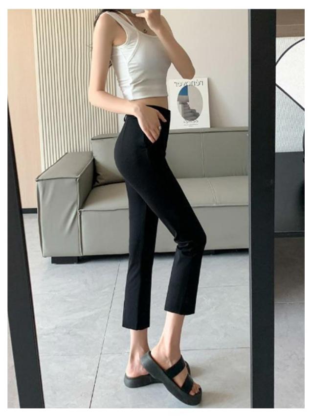 冷感 ズボン OL スラックス ストレッチ 八分丈パンツ ボトムス ウエストゴム 九分丈パンツ 夏 オフィスカジュアル オフィス テーパード 体型カバー 黒 タックパンツ 接触冷感 レディース 通勤 レディース 美脚シルエット