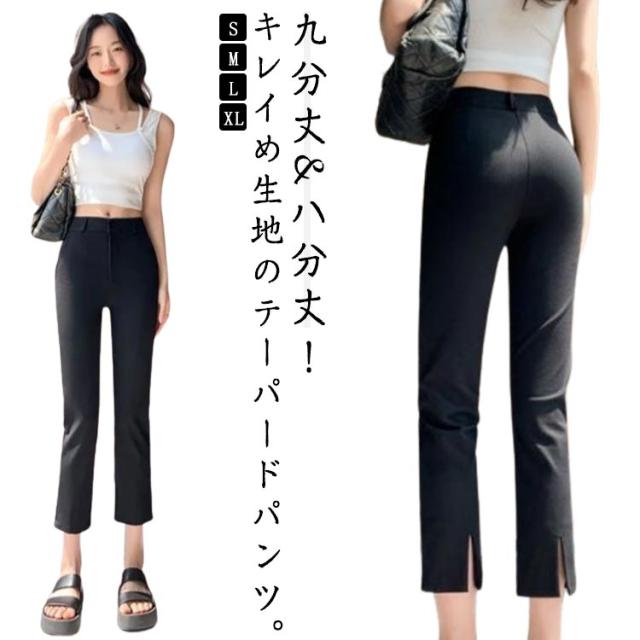 ボトムス パンツ 冷感 ウエストゴム 九分丈パンツ オフィスカジュアル スラックス テーパード オフィス 夏 ストレッチ ズボン 八分丈パンツ 体型カバー 黒 タックパンツ 接触冷感 レディース 通勤 OL 美脚シルエット