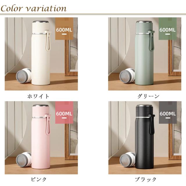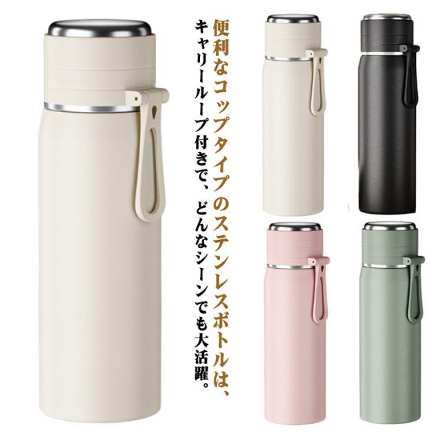ステンレス ハンドル 水筒 コップ付き 600ml キャリーループ ワンタッチ 持ち運び 水筒 直飲み 保温 マグボトル ステンレスボトル 保冷 コップ飲み スポーツドリンク対応 コップタイプ マグ ボトル 大人 子供