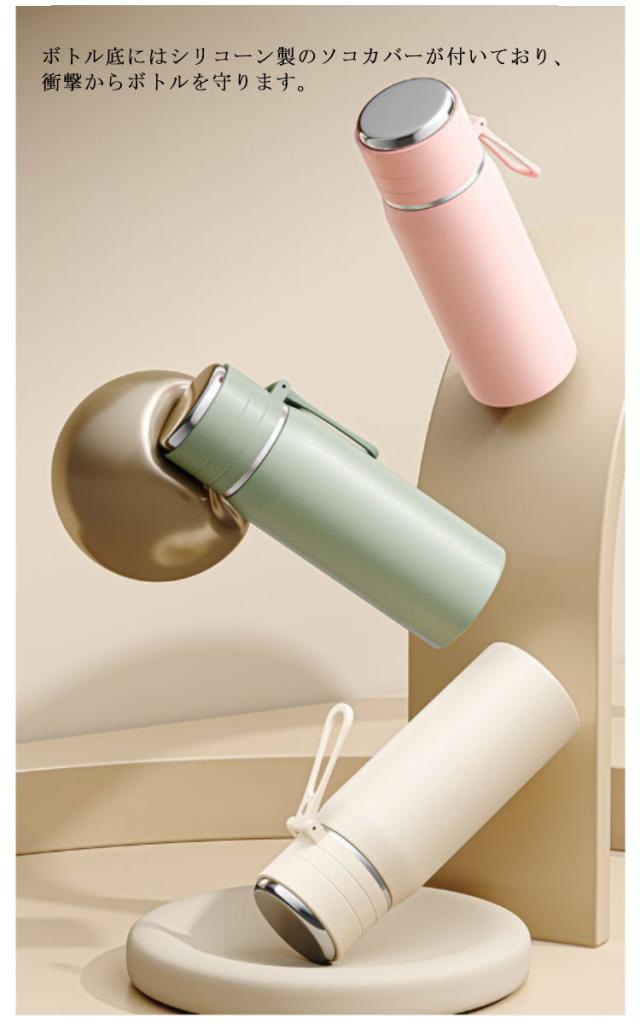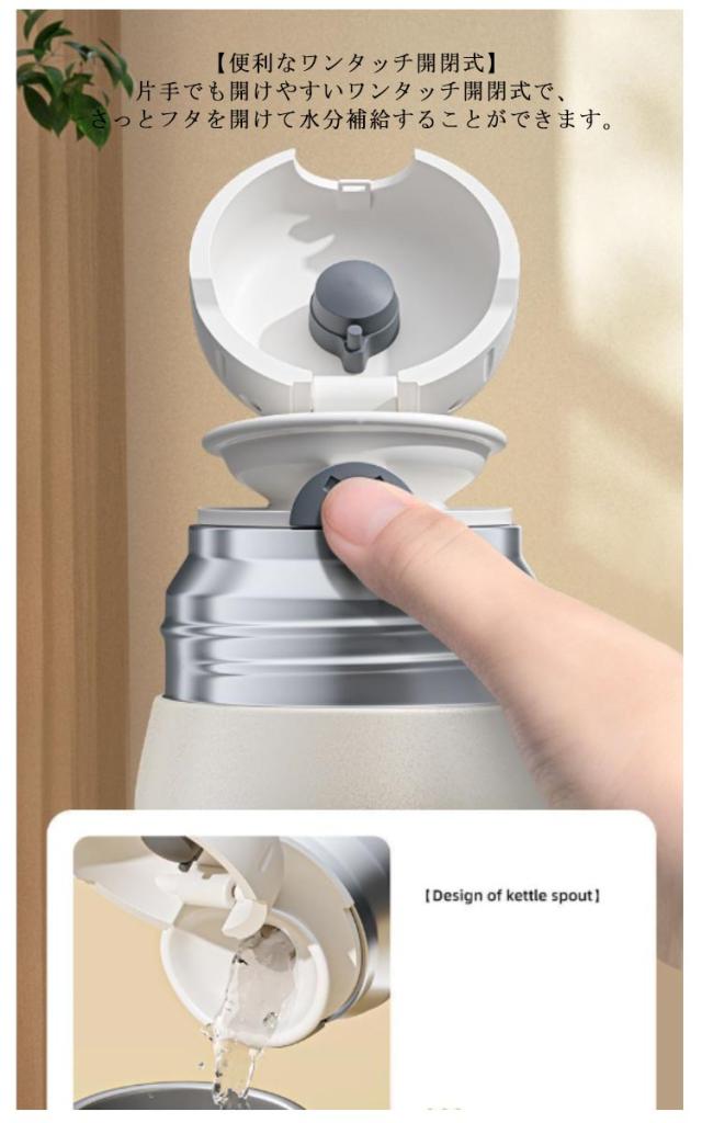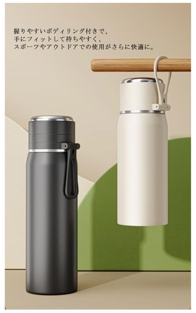 | 便利なコップタイプのステンレスボトルは、キャリーループ付きで、どんなシーンでも大活躍。 【便利なワンタッチ開閉式】 片手でも開けやすいワンタッチ開閉式で、さっとフタを開けて水分補給することができます。 アウトドアやジム、ランニング、ハイキングなど、アクティブな生活をサポートします。 コップタイプなので飲み物をコップに出して、温度を調節しながら飲むことができます。 ボトル底にはシリコーン製のソコカバーが付いており、衝撃からボトルを守ります。 握りやすいボディリング付きで、手にフィットして持ちやすく、スポーツやアウトドアでの使用がさらに快適に。 すべてのパーツを丸洗いできるので清潔に保つことができます。 | |