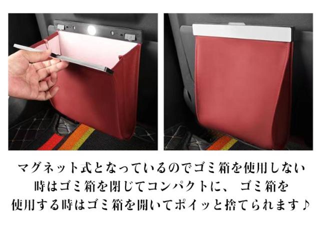 車 おしゃれ ゴミ箱 車用 コンパクト PUレザー LED 車内 フック 車載用 後部座席 車 倒れない 車ゴミ箱 折りたたみ 便利グッズ ダストボックス 車載 収納 ごみ箱 固定 折りたたみ シンプル 車用品 マグネット 簡単設置