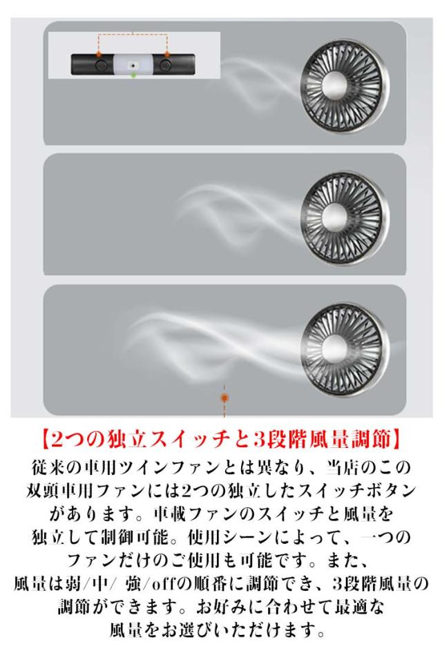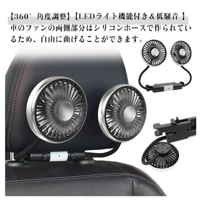 ツインファン 車 扇風機 ヘッドレスト 1.8m 子供 車載扇風機 車載 後部座席 360度マルチアングル角度調整 3段階風量 USB給電式 カーファン 双頭車載ファン 小型 車載用扇風機 静音 ダブルファン 熱中症対策