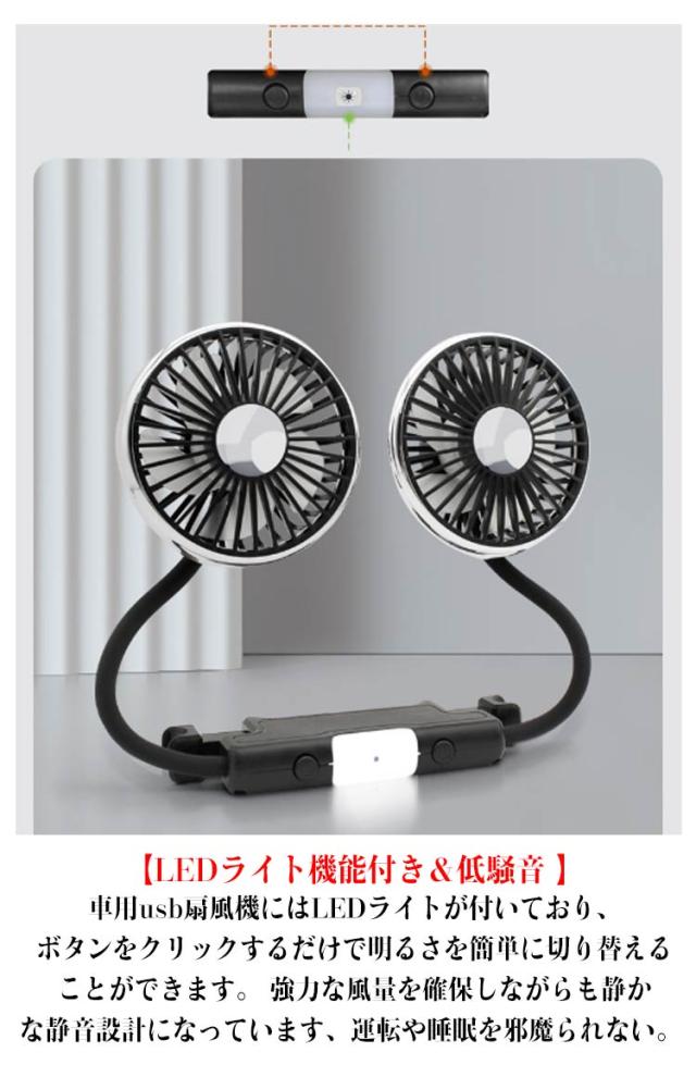 | 【360°角度調整】車のファンの両側部分はシリコンホースで作られているため、自由に曲げることができます。角度は手動で360°調整可能、清新なそよ風が後部座席や後部座席の隅々まで吹くことを確保します。運転中に乗客、ペット、子供を快適にするのに最適です。夏日の暑い車内対策、夏の旅行やお出かけに便利。 【2つの独立スイッチと3段階風量調節】従来の車用ツインファンとは異なり、当店のこの双頭車用ファンには2つの独立したスイッチボタンがあります。車載ファンのスイッチと風量を独立して制御可能。使用シーンによって、一つのファンだけのご使用も可能です。また、風量は弱/中/ 強/offの順番に調節でき、3段階風量の調節ができます。お好みに合わせて最適な風量をお選びいただけます。 【LEDライト機能付き&低騒音 】車用usb扇風機にはLEDライトが付いており、ボタンをクリックするだけで明るさを簡単に切り替えることができます。 強力な風量を確保しながらも静かな静音設計になっています、運転や睡眠を邪魔られない。 【取り付けが簡単&幅広い用途】工具不要、簡単取り付け。バックルの一端をヘッドレストロッドに置き、もう一方の端がヘッドレストロッドに引っかかるまで押し込むだけで取り付けが完了します。 | |