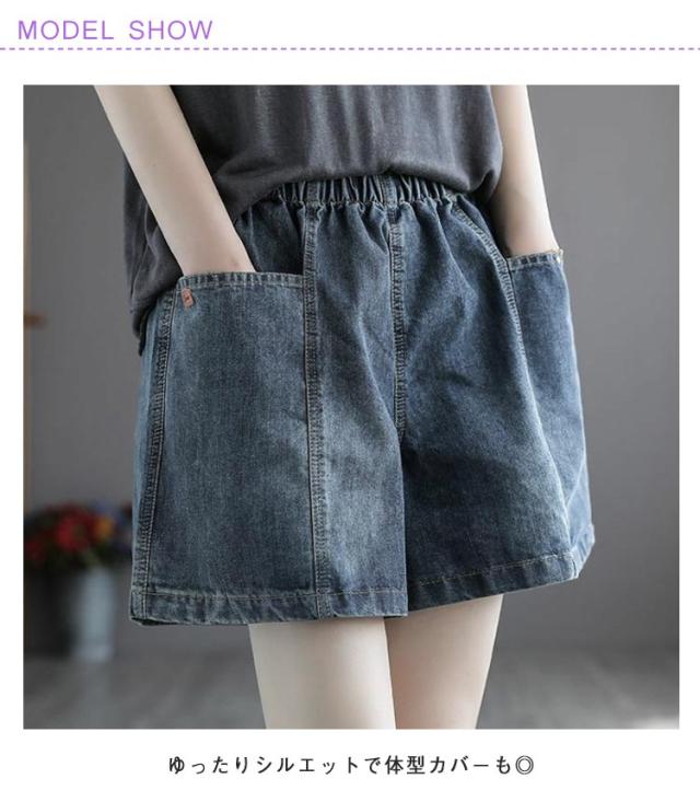 レディース デニムパンツ ハイウエスト 韓国ファッション ワイドパンツ 30代 大きめ 夏用 ショートパンツ ウエストゴム シンプル 体型カバー 着痩せ 20代 薄手 40代 ポケット付き おしゃれ 楽ちん 旅行