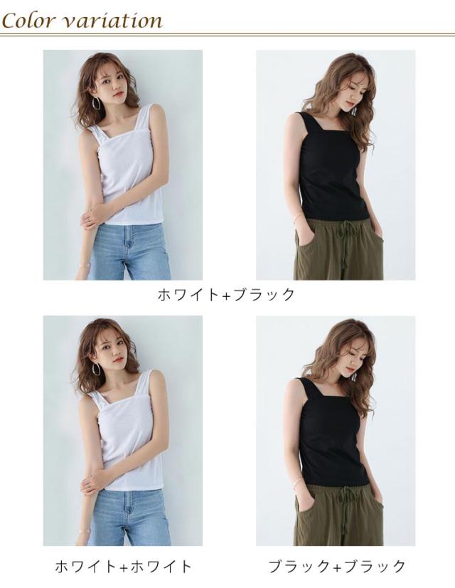 | 2点セット ブラ紐隠し・チラ見せ タンクトップ 肩紐部分が太めに改善し、ブラ紐をすっぽり覆い隠すようになります 脇高デザインしっかりフィットで横からのチラ見え防止出来るブラトップです レースや胸元の開いたお洋服など、空きのあるお洋服に様々にコーディネートぴったり | |
