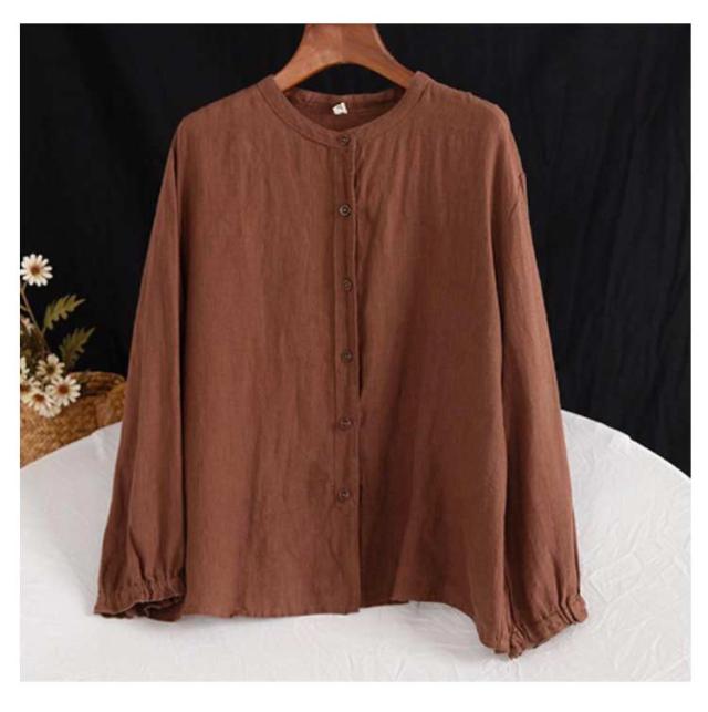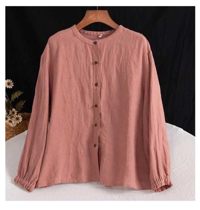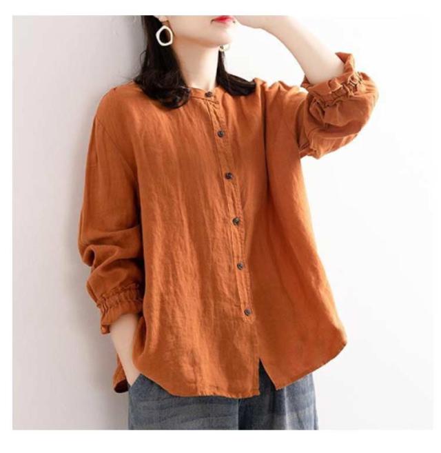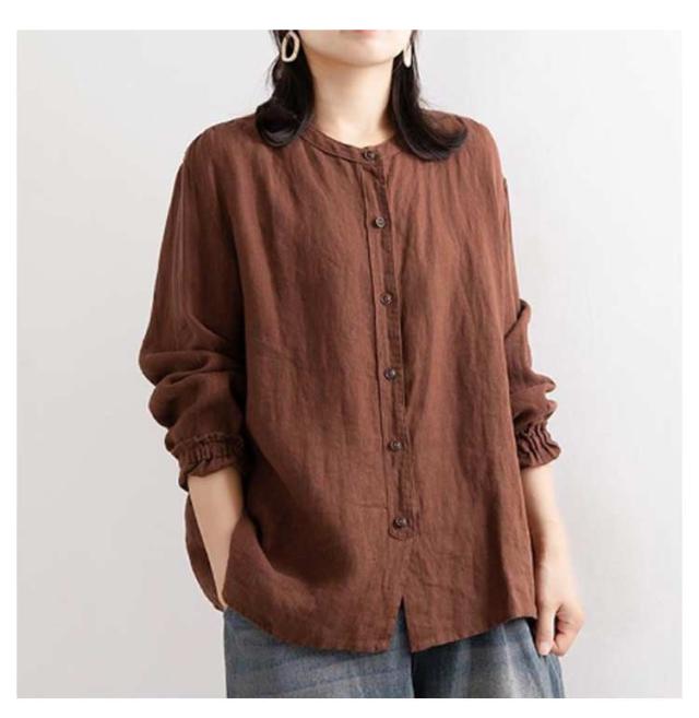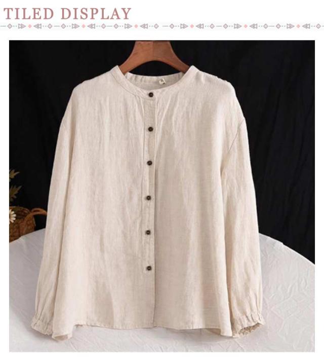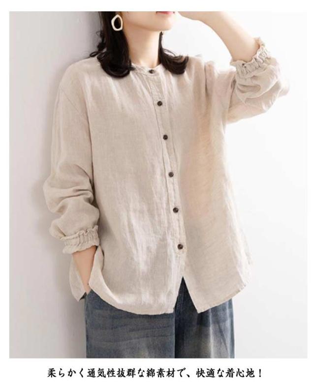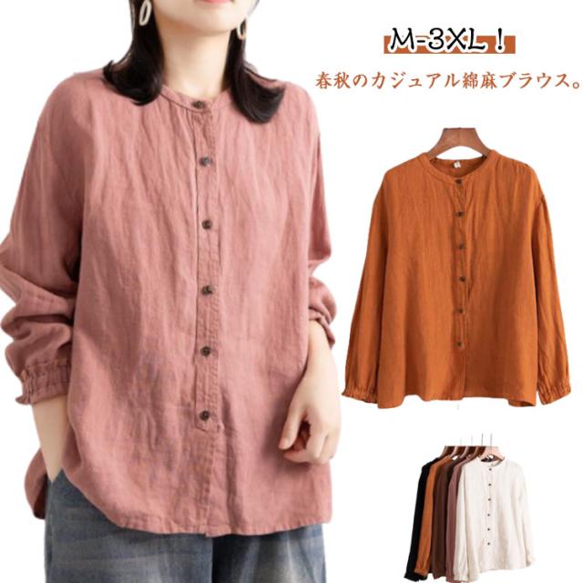 | M-3XL!春秋のカジュアル綿麻ブラウス。 スタイリッシュな立ち襟。 ゆったりしたシルエットで体型カバー効果も期待♪ 柔らかく通気性抜群な綿素材で、快適な着心地! 普段着から通勤まで大活躍のアイテムです。 | |