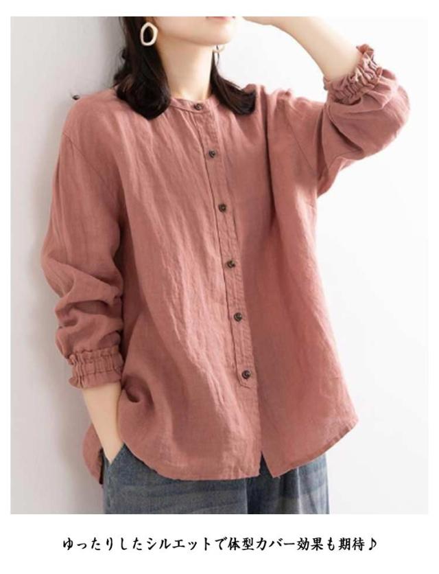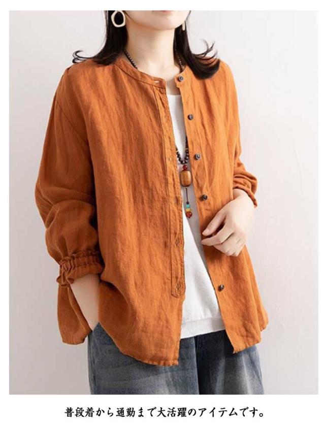 ナチュラル 大きいサイズ 長袖 シャツ ブラウス レディース カジュアル 綿麻風 コットン 綿 丸衿 トップス シャツブラウス ブラウス 無地 秋服 前開け 体型カバー アウター 春 ゆったり 夏 30代 40代 50代 秋 春 通気性 ギフト プレゼント