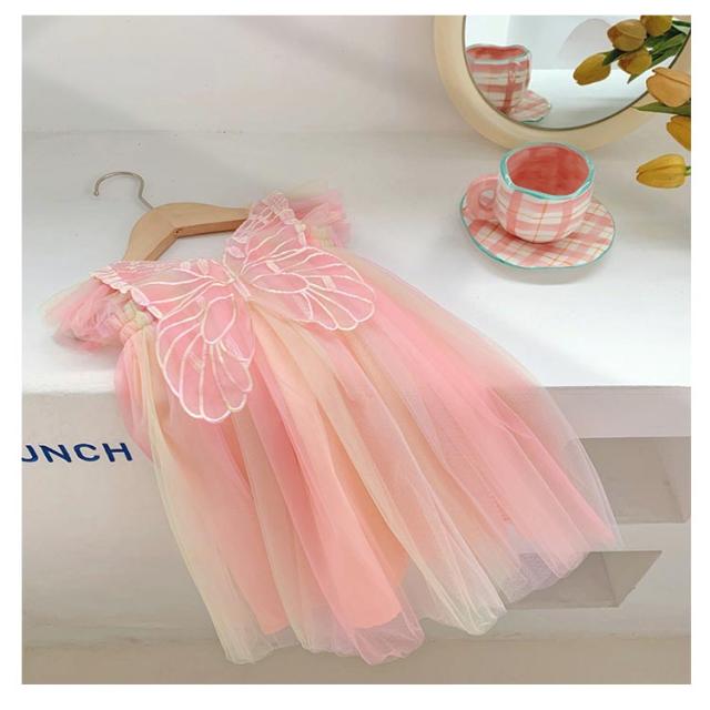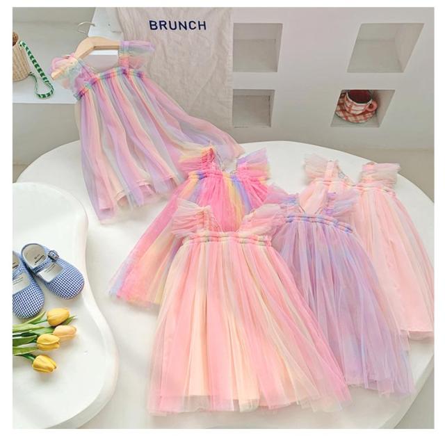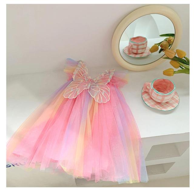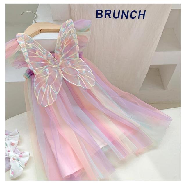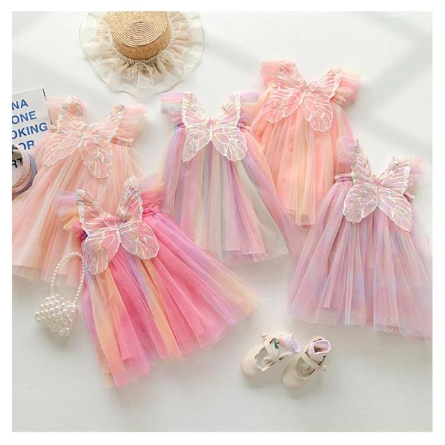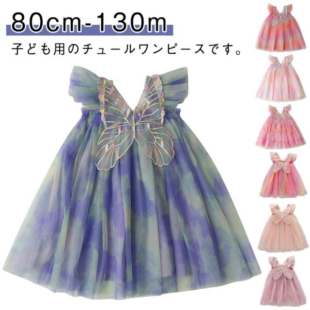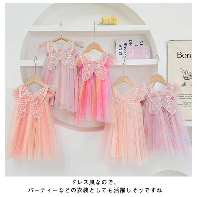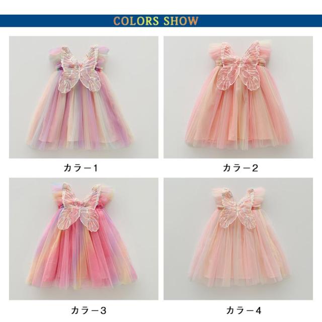 チュールワンピース ノースリーブ 蝶の羽 チュール カラフル ベビードレス かわいい ベビー ベビーワンピース チュールドレス 女の子 子ども キッズ 虹色 女の子 チュール ベビー服 ベビー 子供服 蝶柄 スカート 入園 卒園 保育園 入学式 撮影衣装