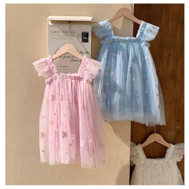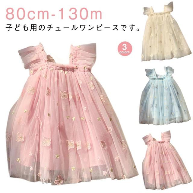 立体刺繍 チュール ワンピース 蝶柄 ベビー ベビー服 ノースリーブ チュールドレス ベビーワンピース 子ども キッズ チュールワンピース チュール 女の子 ベビー 女の子 子供服 かわいい スカート 入園 卒園 保育園 入学式 撮影衣装