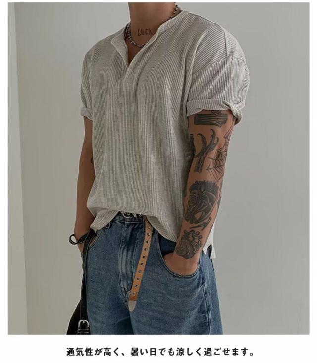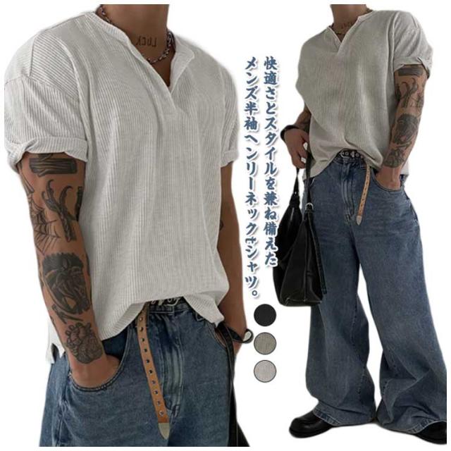 ヘンリーネック シンプル 半袖 半袖tシャツ 無地 インナー Tシャツ 半袖 メンズ インナー テーシャツ 春夏 カジュアル トップス ティーシャツ Tシャツ カットソー おしゃれ アメカジ 20代 トップス ヘンリーネック 30代 40代 50代 60代 M L XL 2XL 3XL