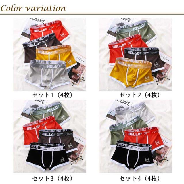 メンズ 男性用下着 4枚セット 肌着 ボクサーパンツ 抗菌防臭 通気 前閉じ 吸湿排汗 ショーツ セクシー ボクサーブリーフ ボクサーパンツ アンダーウェア ローライズ オールシーズン コットンストレッチ おしゃれ 柔らかい