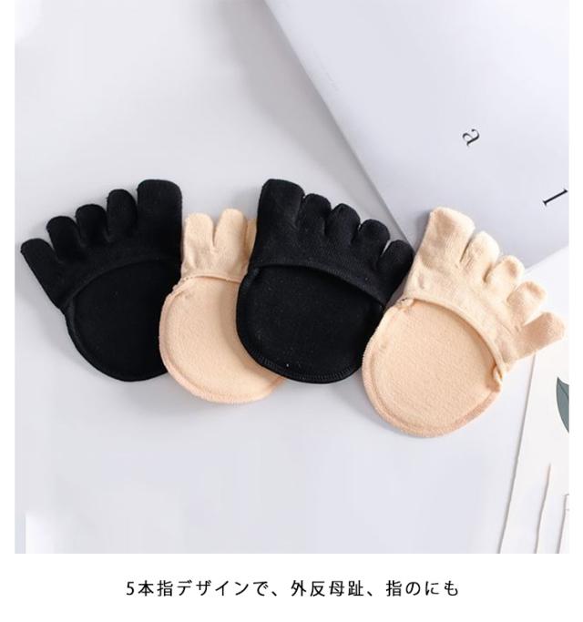 5足セット 足裏保護パッド 足裏サポート フットカバー レディース 中足骨パッド 足裏痛み 綿 滑り止め コットン シリコン 5本指靴下 靴擦れ 洗える フットカバー 扁平足 偏平足 土踏まず フットケア 肌色 ブラック ソックス