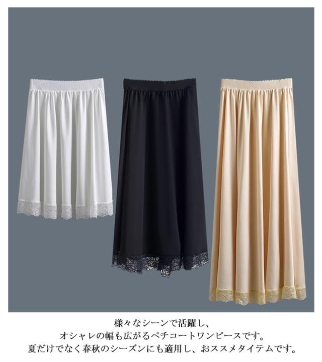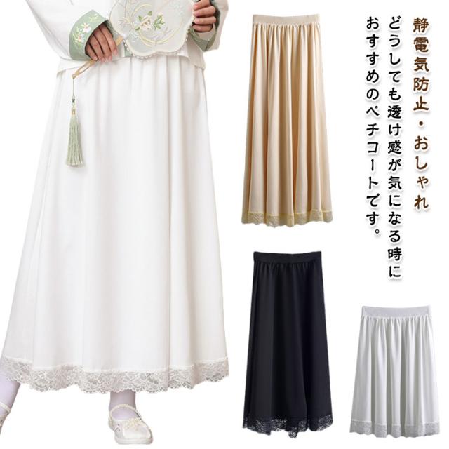 ぺチスカート ペチコート 裾レース スカート 静電気防止 ゆったり 着物 透けない レディース 体型カバー ワンピース インナー レイヤード 重ね着 インナースカート 透け防止 ロングスカート 透け対策 和装 浴衣 肌着 下着 ペチコート シンプル 春 夏 秋