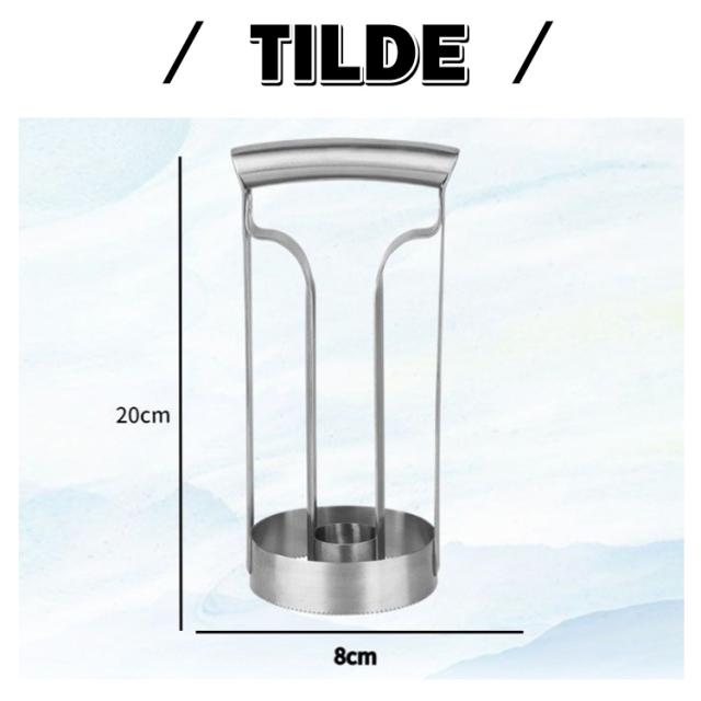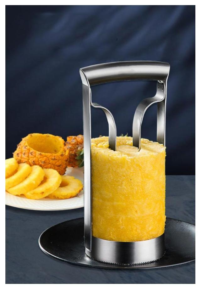 | 新鮮なパイナップルの皮むきと芯の除去は、数秒で迅速かつ効率的に完了することができます。 理想的なパイナップルカッター。 滑りにくいハンドルで作業がしやすく、操作も簡単です。 パイナップルの上部を切り、位置を合わせて下に回転させ、回転させて取り出します。 パイナップルを新鮮に保つために、果物全体を一度に切ることができ、果物の果汁はそのまま保存することができます。 丈夫でスタイリッシュなステンレス製で、お手入れも簡単! | |