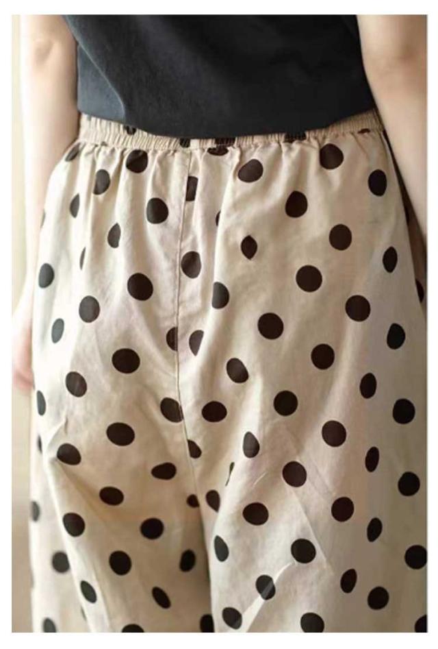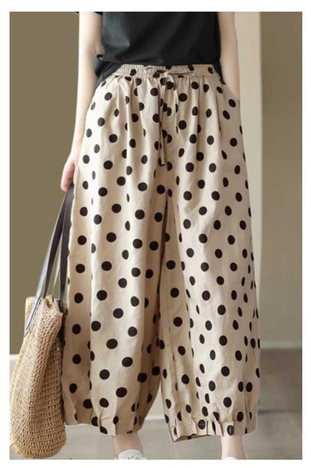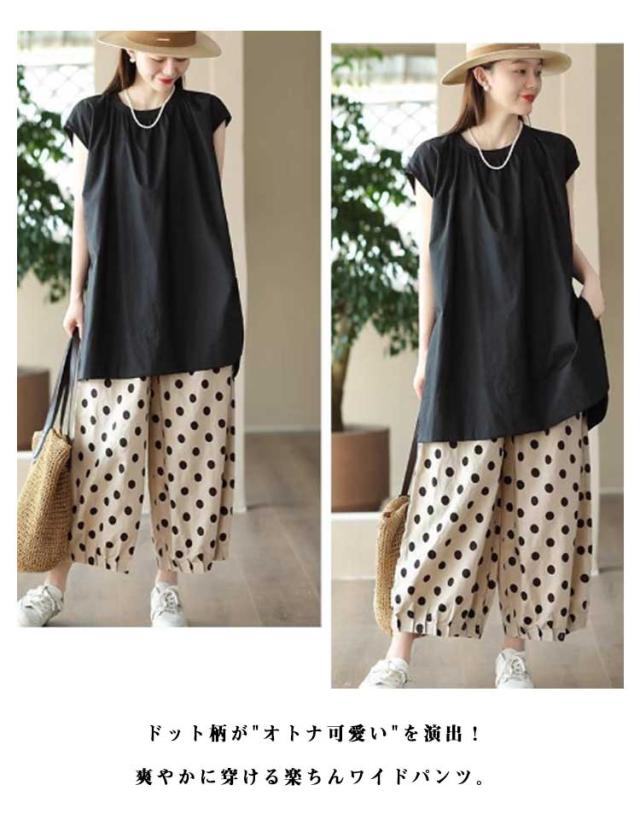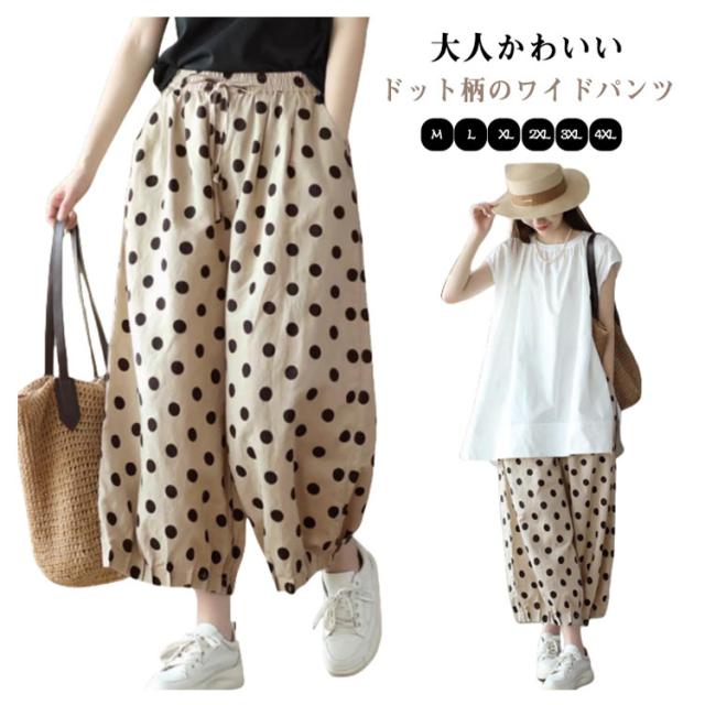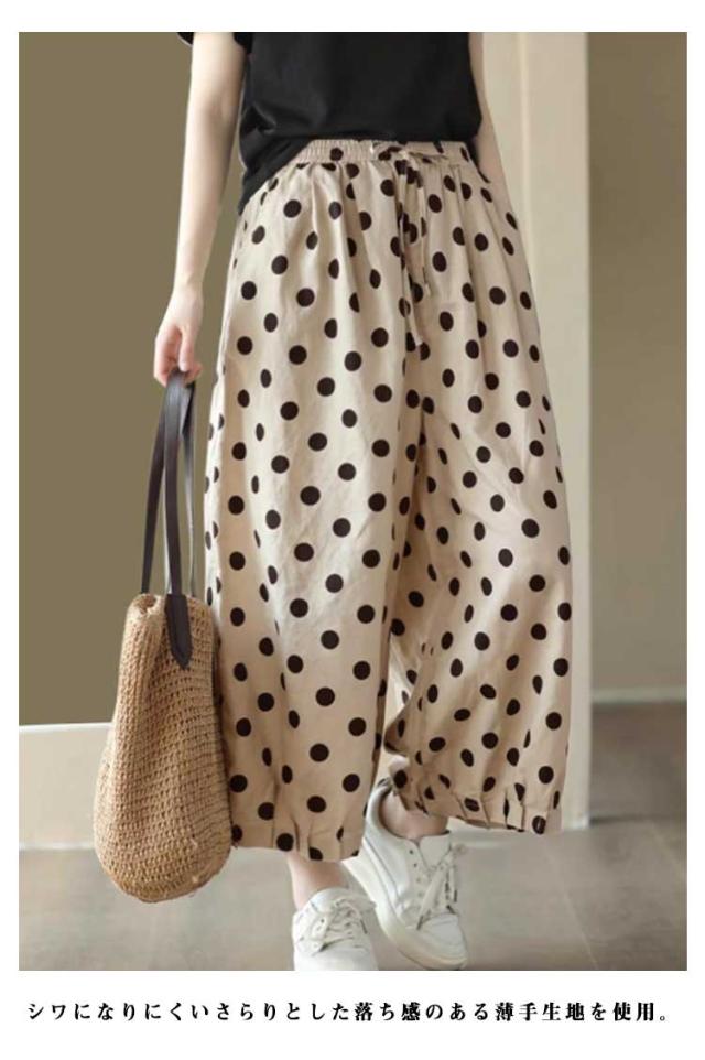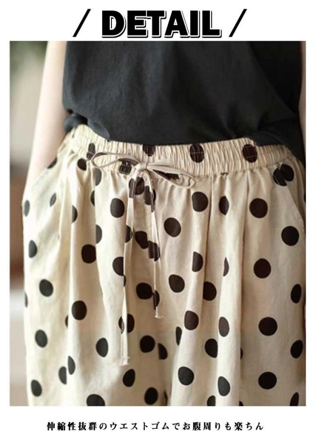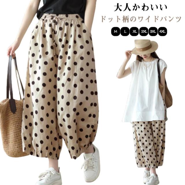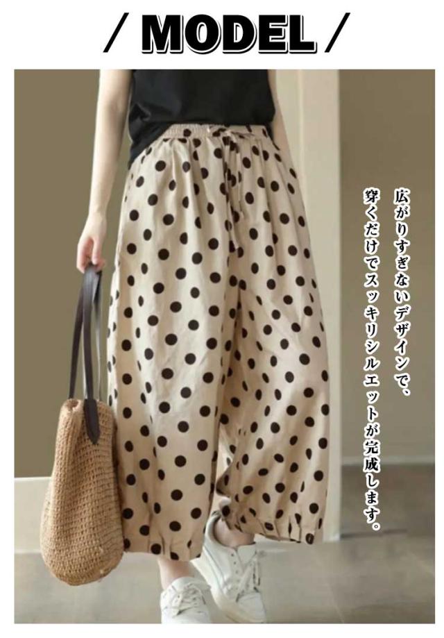 リラックス 柄パンツ レディース 9分丈 美シルエット ロングパンツ 春夏 長ズボン ストレート ワイドパンツ ワイドパンツ 薄手 イージーパンツ 薄手 カジュアル ゆったり 体型カバー 水玉 ウェストゴム 送料無料 大きいサイズ 美脚 可愛い