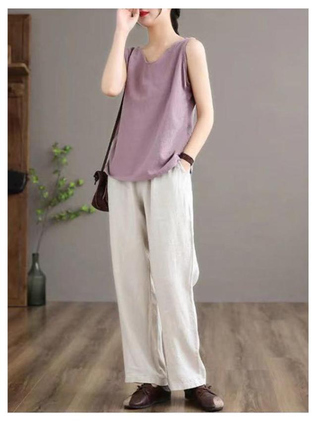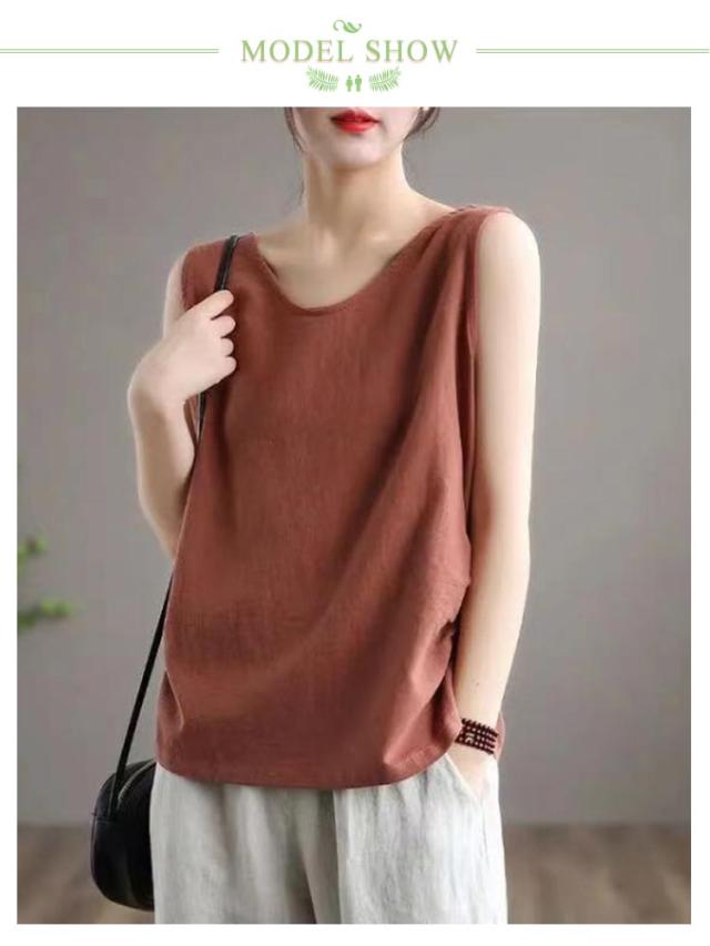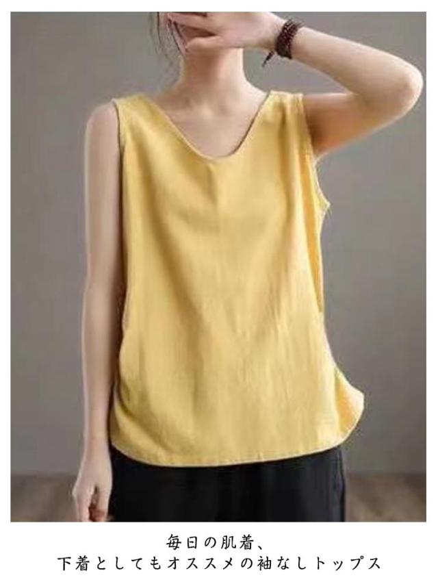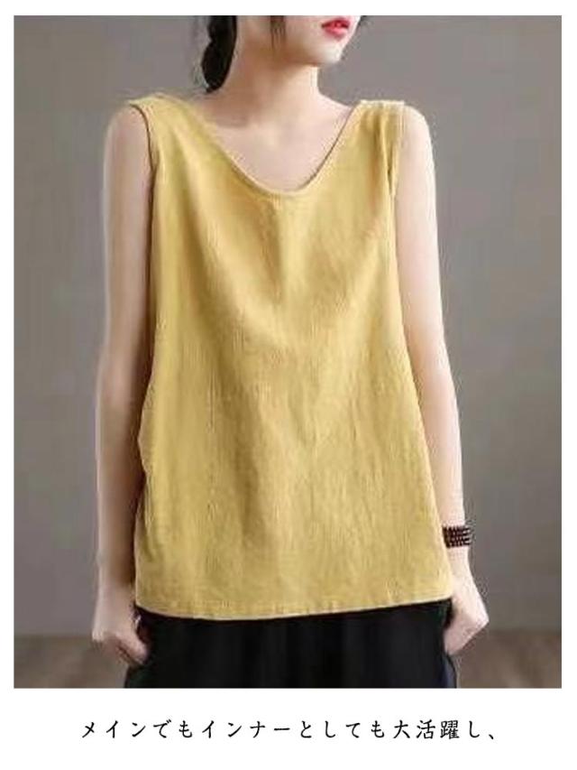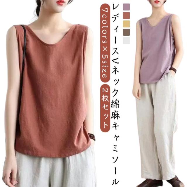 2枚セット キャミソール キャミ 綿麻トップス 綿麻 タンク リネン調 肌着 涼しい 大人 部屋着 サラサラ タンクトップ 薄手 下着 トップス 無地 シャツ 可愛い おしゃれ ナチュラル 女性 夏服 2枚セット シンプル インナー 重ね着