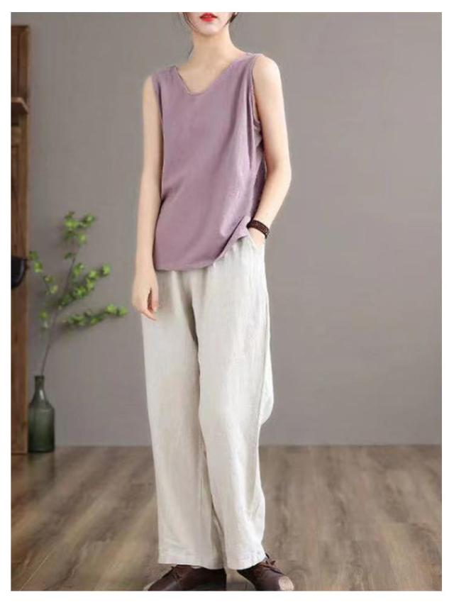 | 【2枚セット】 【7colors×5size】 レディースVネック綿麻キャミソール サラサラ快適! 大きめに襟ぐりの開いたデザインでデコルテをキレイに演出 メインでもインナーとしても大活躍し、 毎日の肌着、下着としてもオススメの袖なしトップス | |