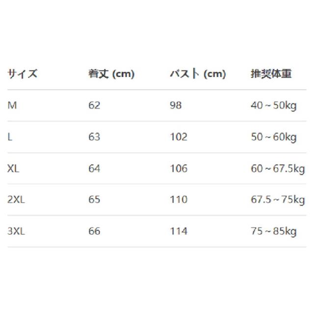 | サイズ | M L XL 2XL 3XL |