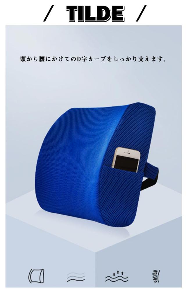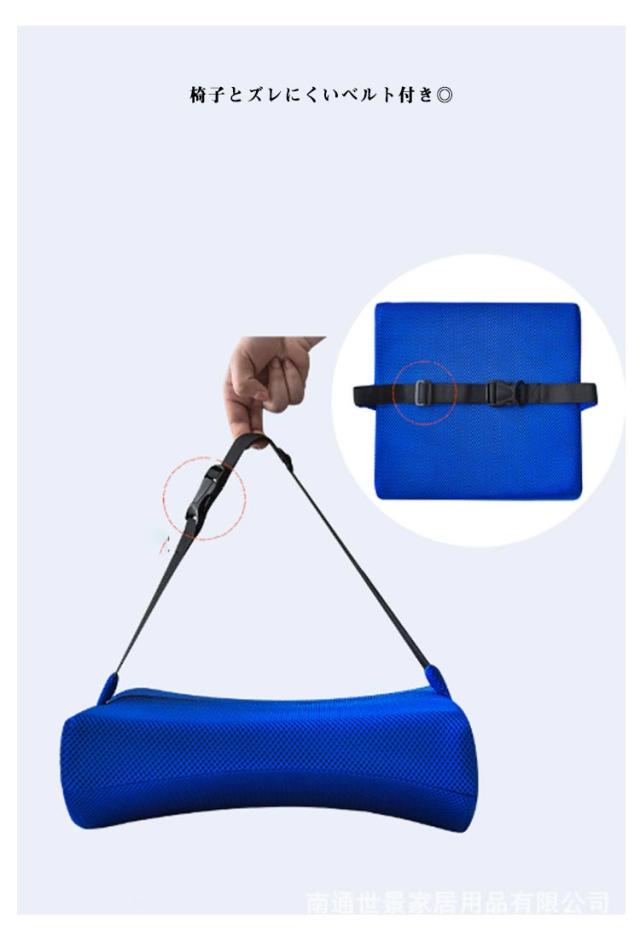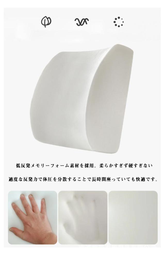 | 人間工学に基づいた設計された腰クッション。 頭から腰にかけてのD字カーブをしっかり支えます。 背筋が自然に伸びることで腰への負担を減らします。 低反発メモリーフォーム素材を採用。柔らかすぎず硬すぎない適度な反発力で体圧を分散することで長時間座っていても快適です。 日々のオフィスワークや長距離運転などが多い方、テレワークの方など快適に座りたい方にオススメです。 椅子とズレにくいベルト付き◎ クッションサイドにはポケットあり◎ | |